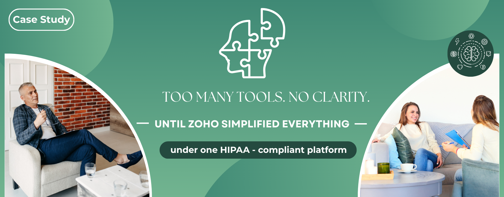A psychotherapy practice in Ottawa was running therapy sessions, public talks, and online courses through separate apps for scheduling, communication, and client management. The fragmented setup led to missed follow-ups, duplicated effort, and no single view of each client or lead—issues that directly resulted in lost clients and stalled growth. Partnering with Amazing Business Results (ABR), the practice adopted Zoho’s HIPAA-compliant system as a unified backbone for bookings, CRM, communication, and marketing. The result is a centralized, automated operation that improves client experience, restores visibility across the business, and creates a foundation for scale.